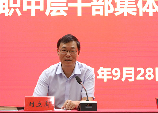 9月28日上午,校纪委在新图书馆学术报告厅开展新任职中层干部集体廉政谈话。校党委常委、纪委书记、派驻监察专员刘立新出席并作集体廉政谈话。新任职的42名中层干部参加会议。会议由校党委常委、组织部长、统战部长李震主持。