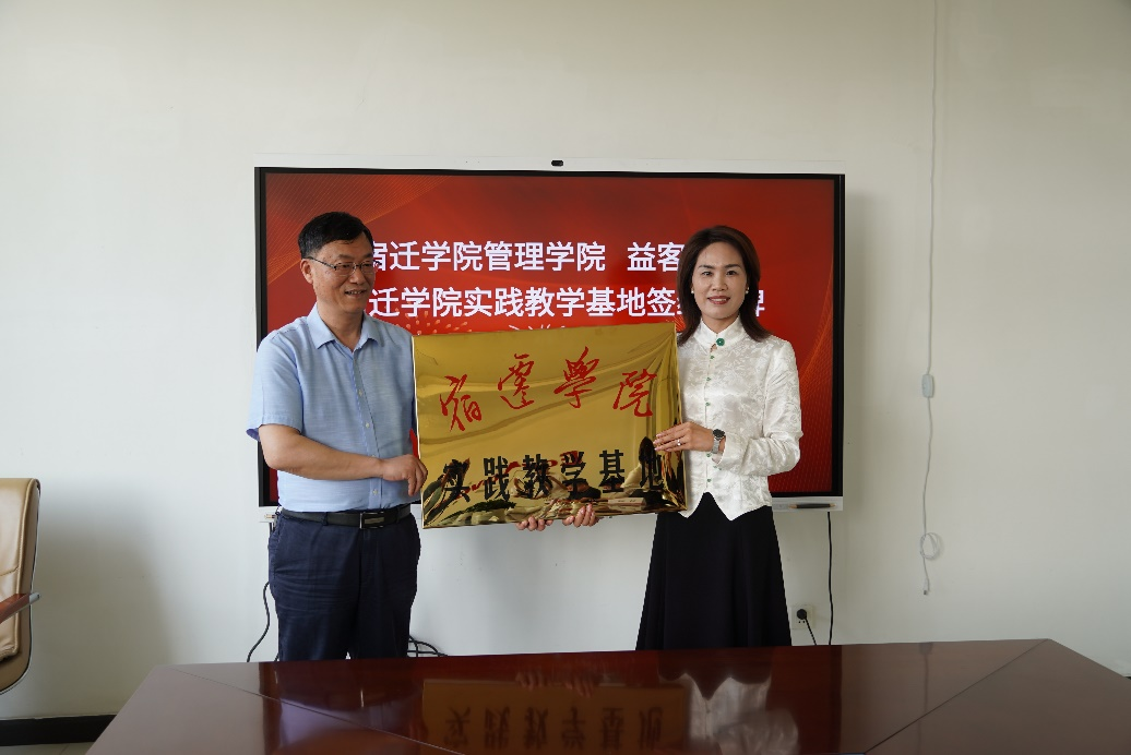 刘立新一行首先走访了益客集团,双方举行实践教学基地签约授牌仪式暨访企拓岗座谈会。座谈会上,公丽云副董事长详细介绍了企业概况与发展历程,并表示希望与我校开展深度校企合作,助力企业解决人才招引和数字化营销等难题。刘立新书记重点介绍了学校坚持扎根宿迁办大学、办宿迁大学的发展战略,全面落实“三联三融”“十大星火计划”。他强调,管理学院要积极主动运用自己的学科专业优势为企业提供管理培训、品牌运营等方面的服务,推动校企双方共同发展。