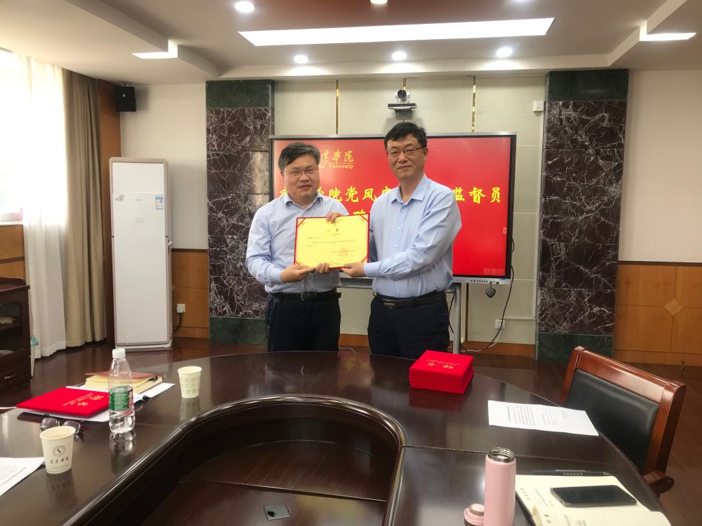 会上,陈寿华主任宣读《关于聘请宿迁学院党风廉政特约监督员的决定》,刘立新书记颁发特约监督员聘书,监督检查处宋继碧解读《宿迁学院党风廉政特约监督员工作办法(试行)》文件,特约监督员代表周明栋博士作表态发言。