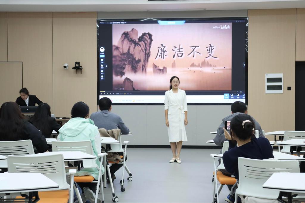 比赛中,来自各学院的参赛选手紧扣廉洁主题,从青年责任担当、地方文化传承、实践路径探索等多个维度,深刻诠释了廉洁的丰富内涵与时代价值。选手们引经据典或结合现实,通过PPT展示、情景再现等多种形式,以饱满的热情和生动的语言,表达他们对廉洁的深刻理解与坚定追求,充分展现了新时代青年积极向上、正气昂扬的精神风貌。