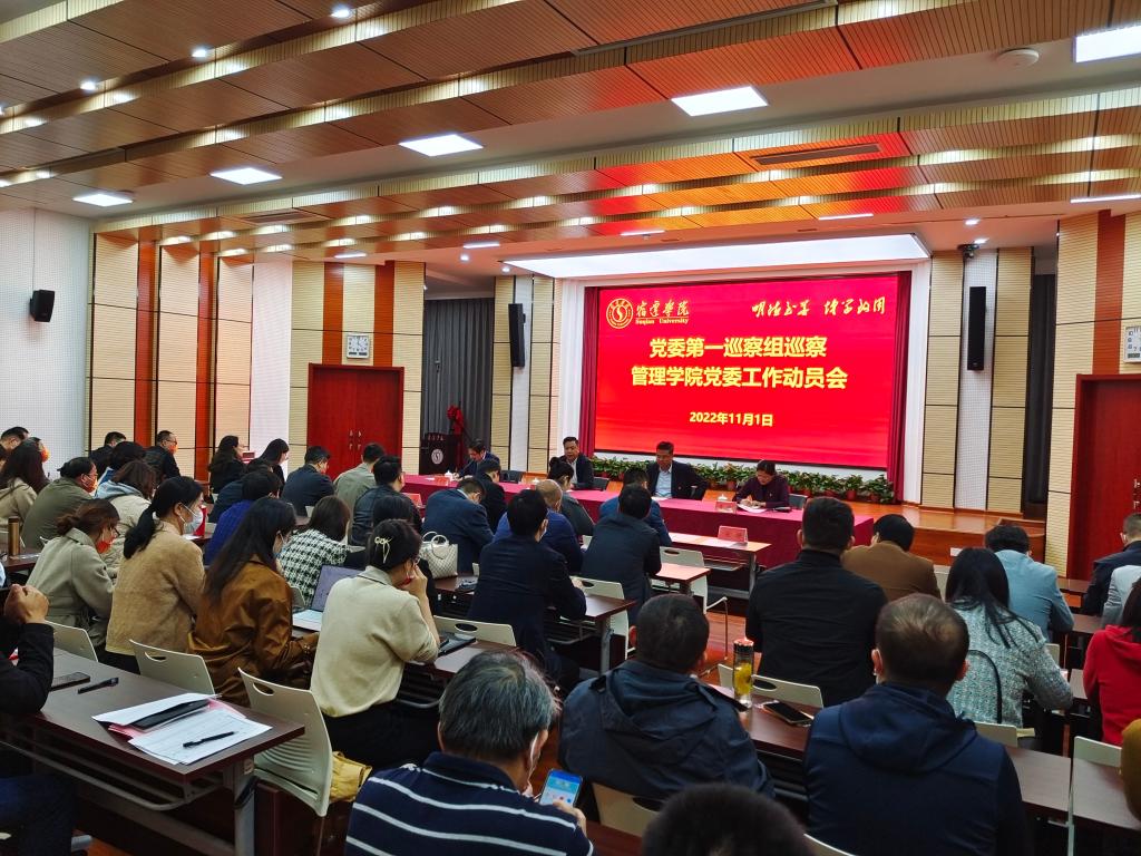 11月1日上午,党委第一巡察组组长李震召开动员会。巡察组组长李震就即将开展的巡察工作作动员讲话,管理学院党委书记龚永刚主持会议,并代表管理学院党委就贯彻落实巡察组要求、配合做好巡察工作作了表态发言。党委第一巡察组全体成员,管理学院党委班子成员,全体教职工参加会议。