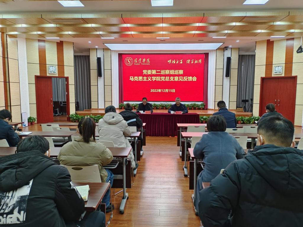 根据巡察工作领导小组的安排,2022年12月15日下午,党委第二巡察组向马克思主义学院党总支反馈巡察情况。党委第二巡察组组长孙以泽代表巡察组向马克思主义学院党总支进行了反馈,并提出整改要求,马克思主义学院党总支副书记沈道波主持会议并作表态发言。