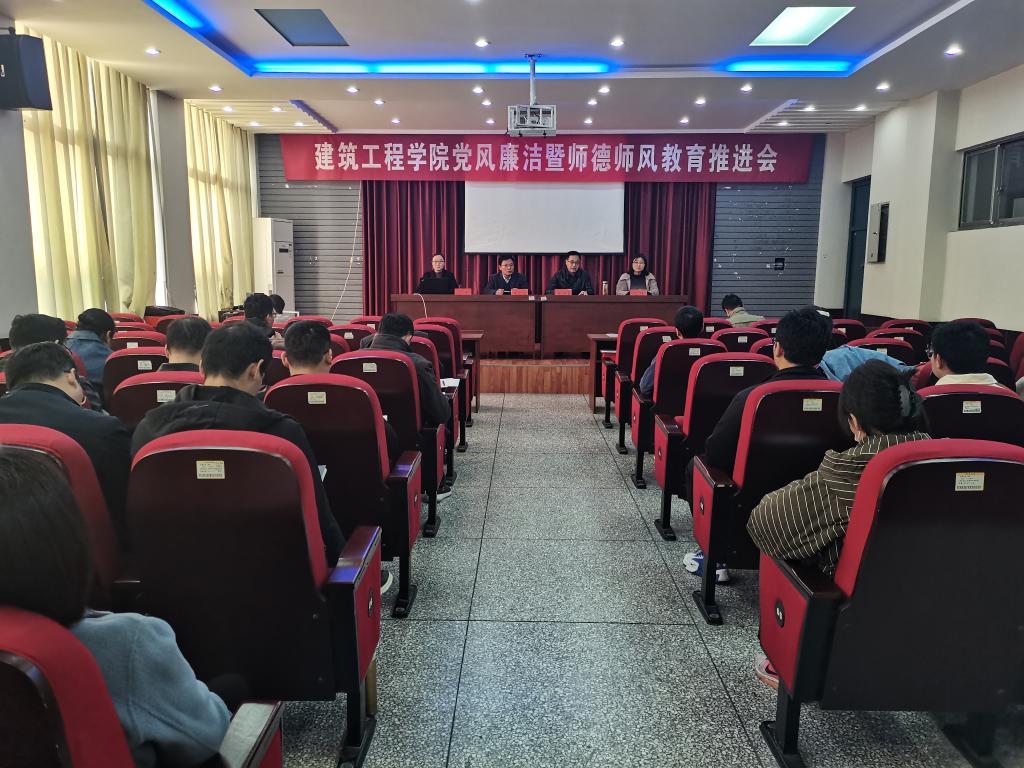 为推进全面从严治党,持续强化党风廉政建设,贯彻落实教育部《关于进一步加强和改进师德建设的意见》精神,切实加强教师的职业道德建设,11月19日下午,建筑工程学院召开党风廉洁暨师德师风教育推进会。会议由党委书记陈胜雷主持。